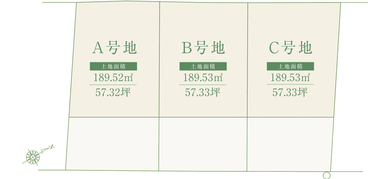 土地面積:189.52m2(57.32坪)~189.53m2(...