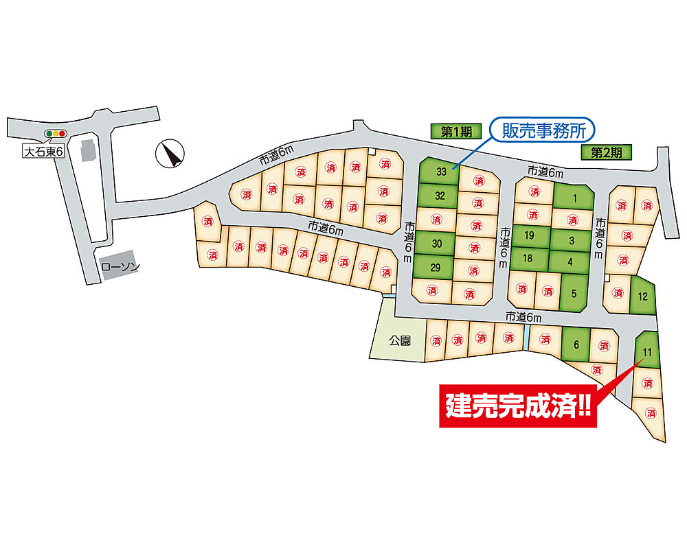 ■□アウトドアを満喫!スポーツ村まで徒歩8分~10分(600m~740m)■□大石幼稚園まで徒歩6分・大石小学校まで徒歩2分■□ローソンへ徒歩1分~3分(80m~190m)■□
