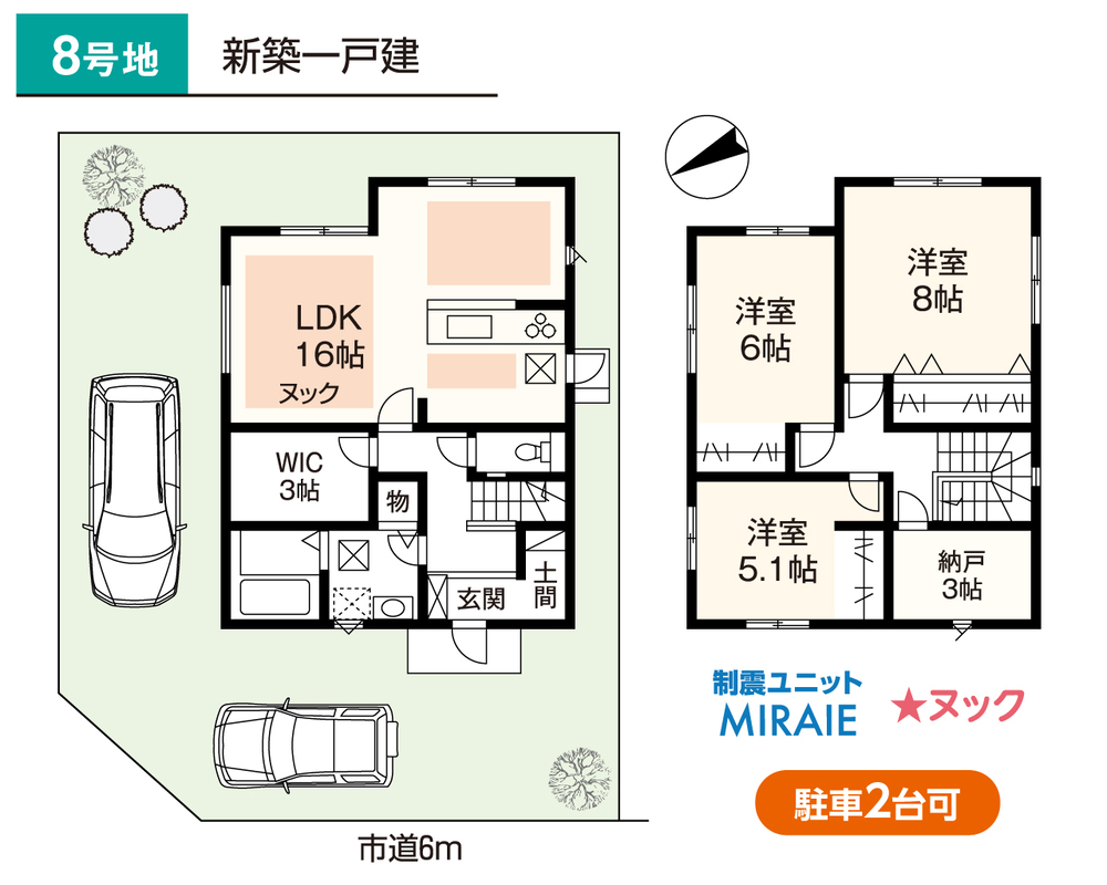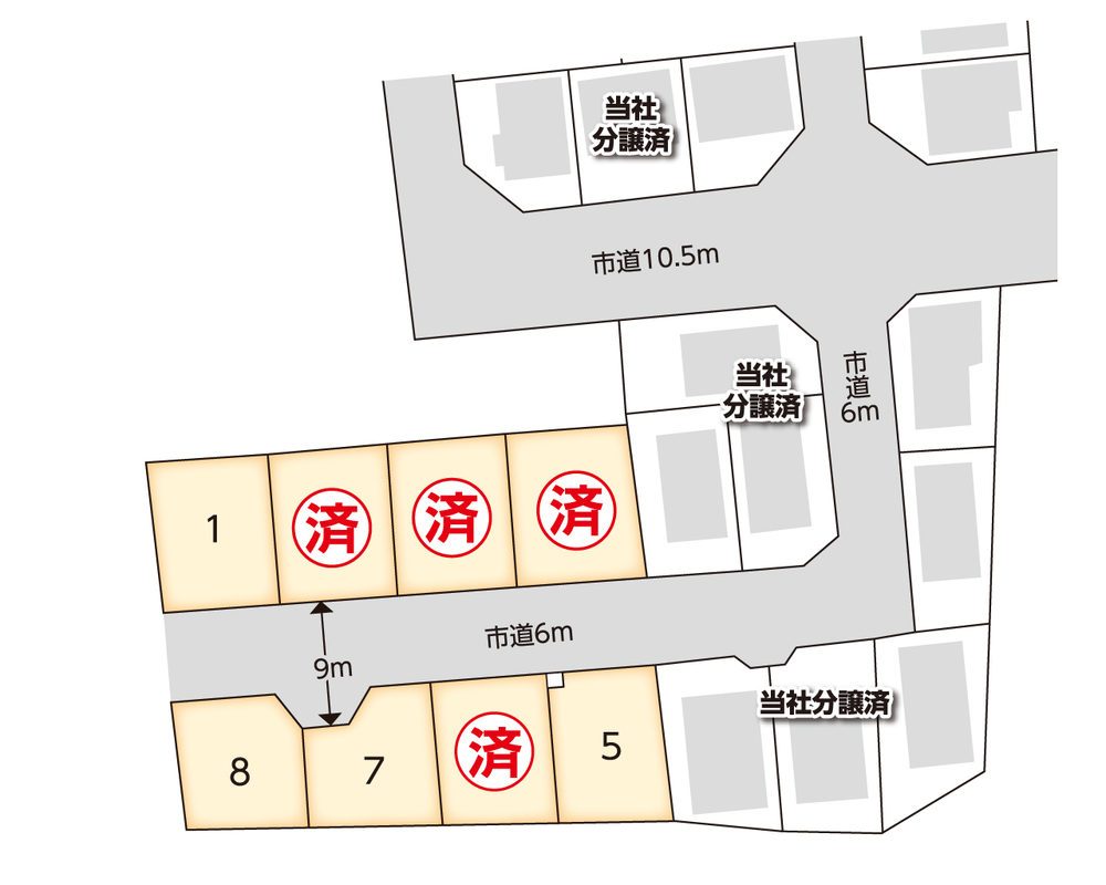 魅力1 全8区画×南向き・前道6m以上×完全自由設計