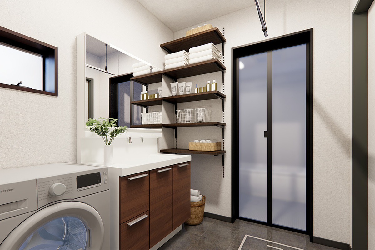 洗面室|室内物干しでちょっと乾かすのにちょうど良い◎