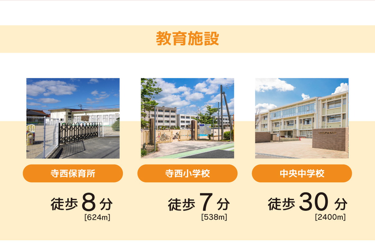- 教育施設やスーパーが徒歩圏内にそろい、暮らしやすい環境が魅力です。新たに道路も整備され、より快適な住環境が整いました。ぜひお気軽にお問い合わせください!