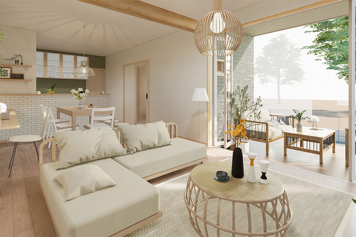 リビング|梁×木目が美しい、ナチュラルデザイン空間