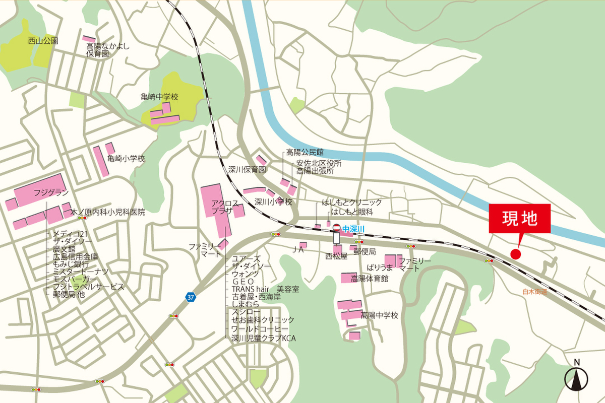 JR芸備線「中深川」駅 徒歩6分 バス 徒歩2分 |