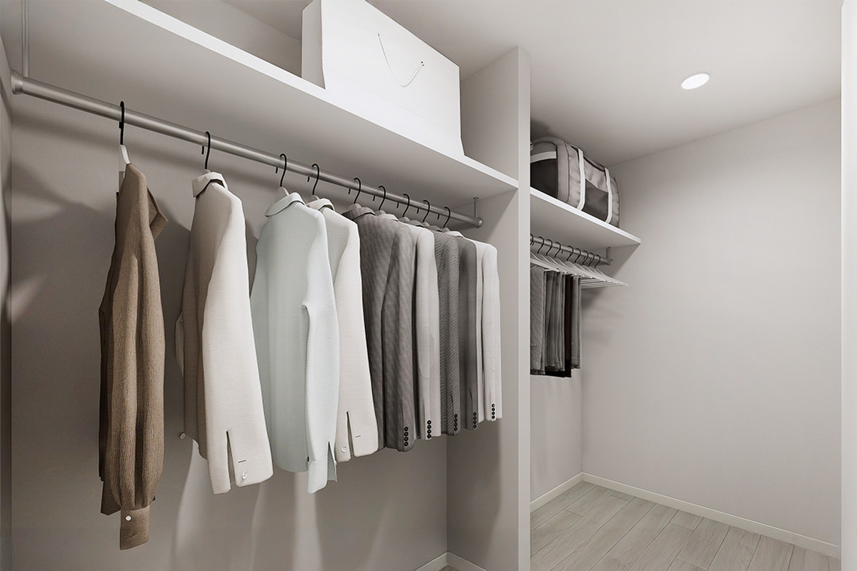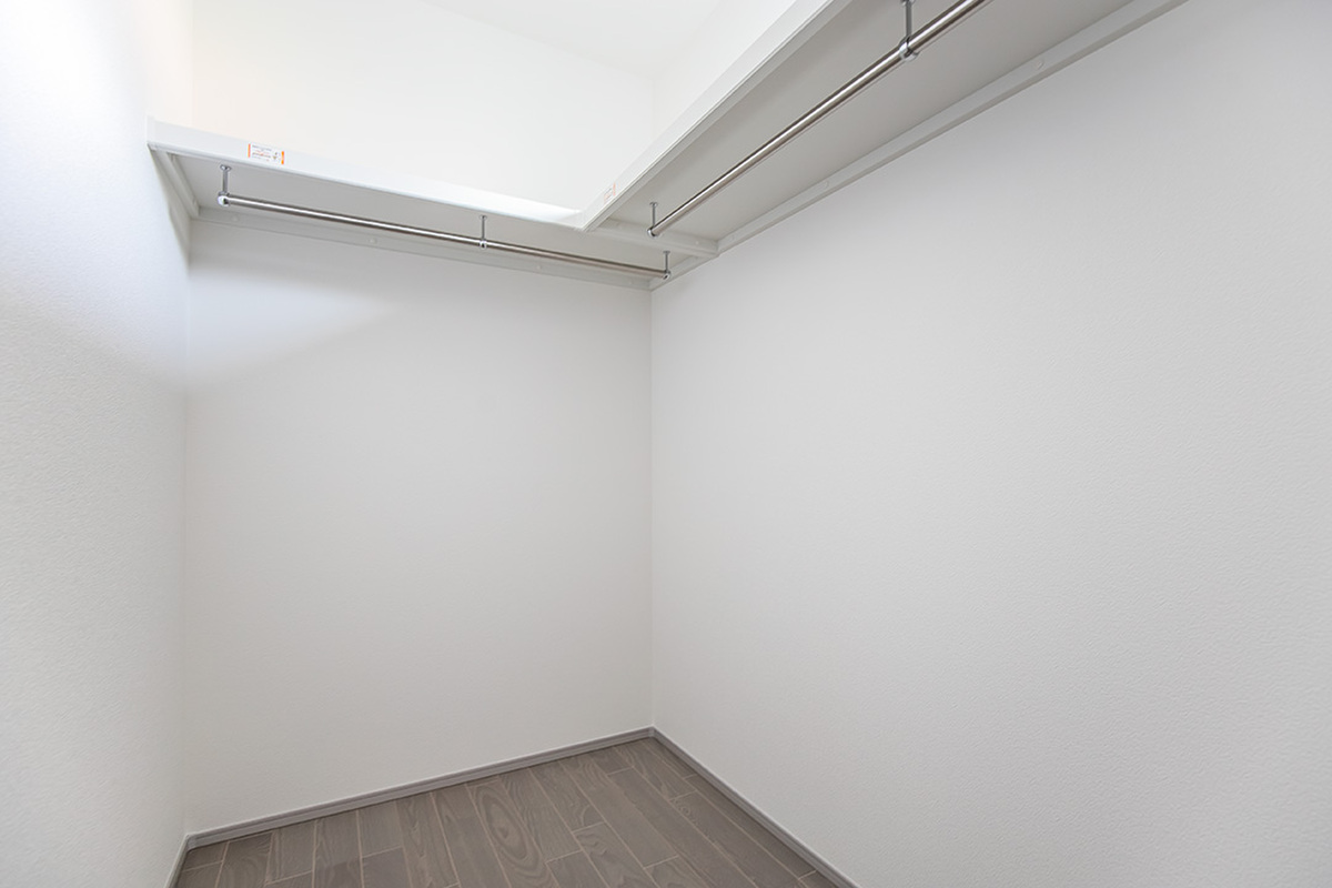 主寝室横のウォークインクローゼットは、衣類や寝具、季節性の家具...