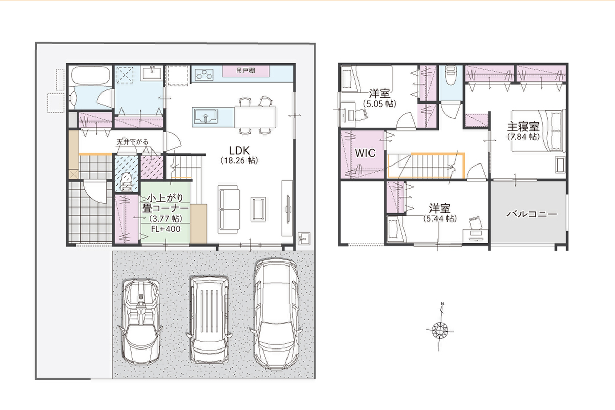 | 建物面積 | - | 土地面積 | 140.29m2・171.49m2(42.43坪・51.87坪) |