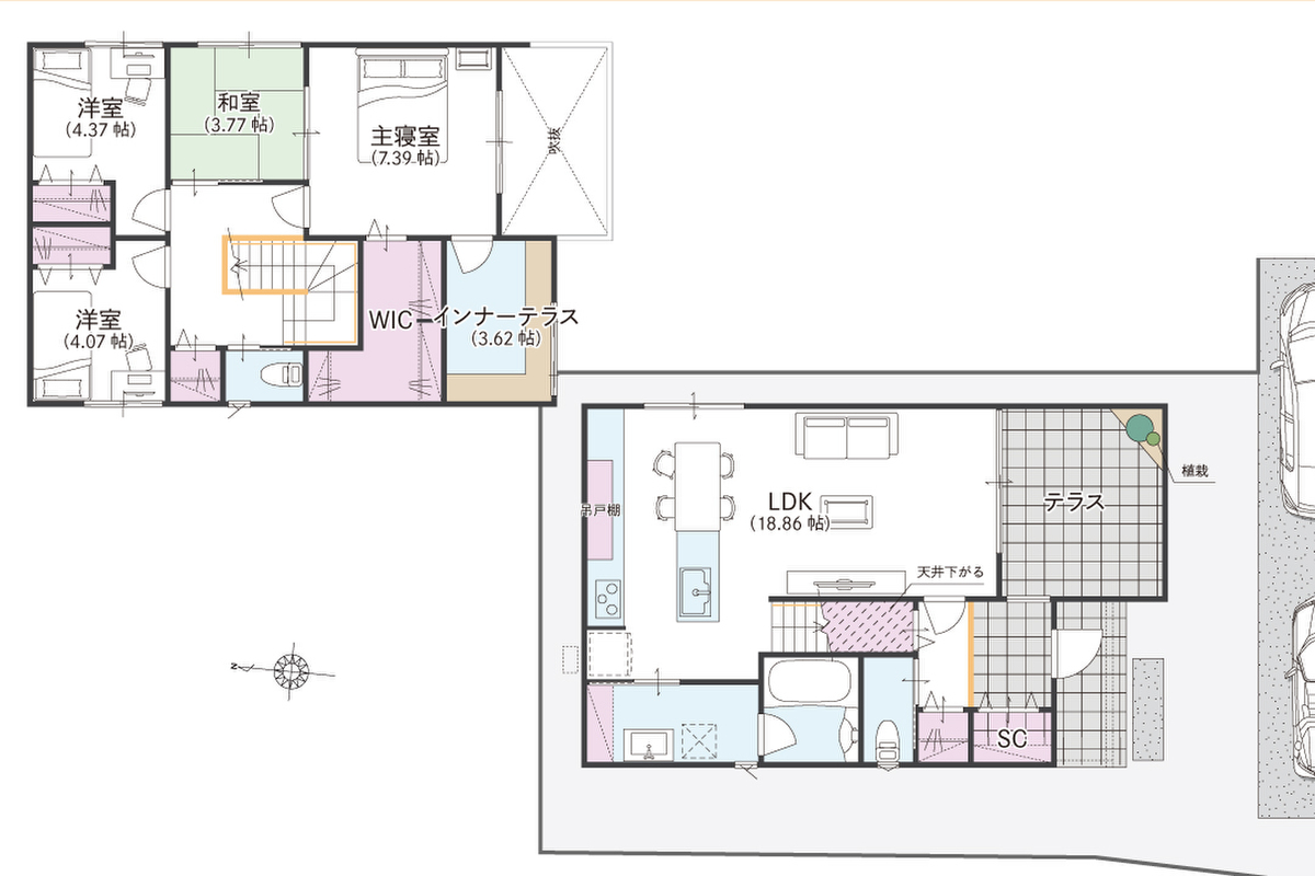 - ※完成予想図やCG合成画像は、門塀・植栽・庭・外観等、実際とは多少異なる場合があります。