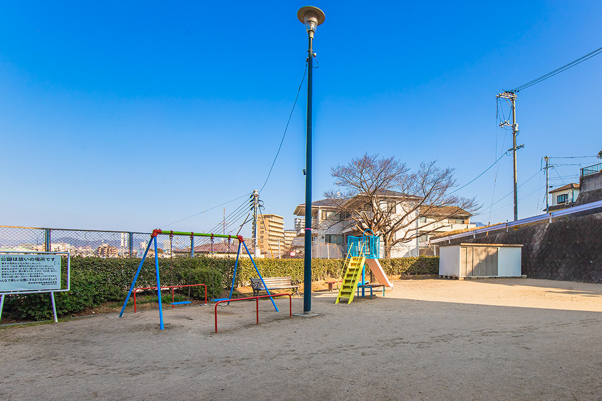見晴らしの良い高台にある開放的な公園。園内にはブランコやすべり...