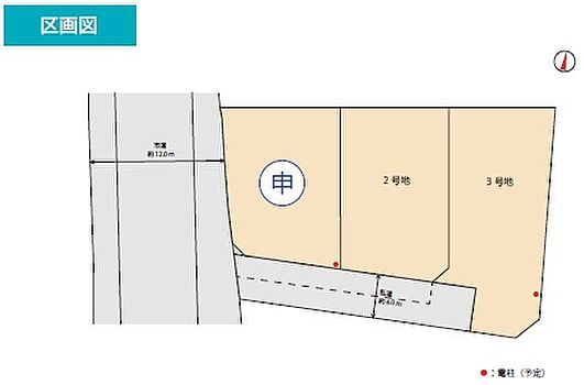 | 駐車場 | - | 道路の幅員 | 幅員 西側約12.0m 私道は1~3号地それぞれに持ち分があり、通行地役権等を設定します。 |