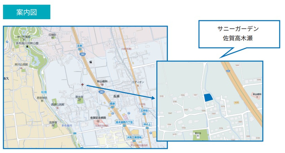 JR長崎本線「佐賀」駅 昭和バス「長瀬」バス停 徒歩約7分 JR長崎本線 佐賀駅 北口 約4120m/車で約11分 |