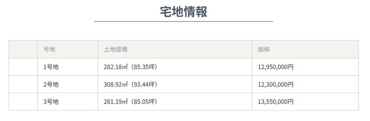| 販売区画数 / 総区画数 | 3区画 / 3区画 | ||