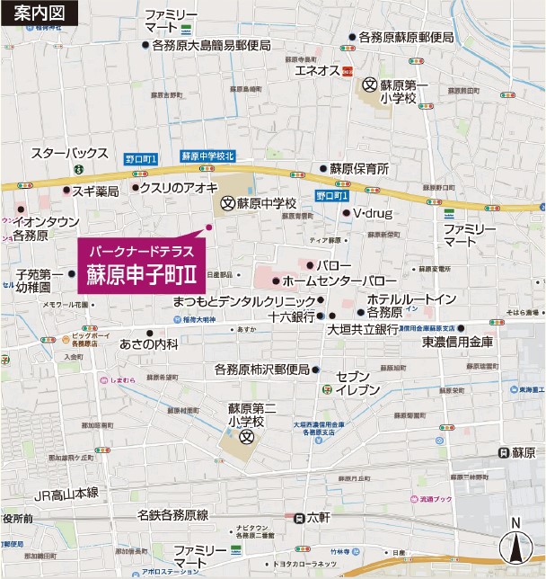 名鉄各務原線「六軒」駅 徒歩18分 JR高山本線「蘇原」駅 徒歩24分 |