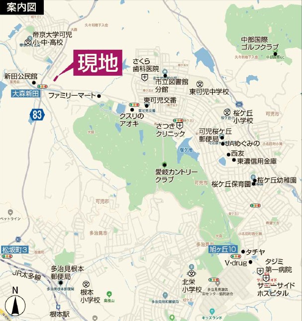 JR中央本線「多治見」駅 車で8km 「」駅 東鉄バス「桂ヶ丘1丁目」バス停下車 徒歩4分 |