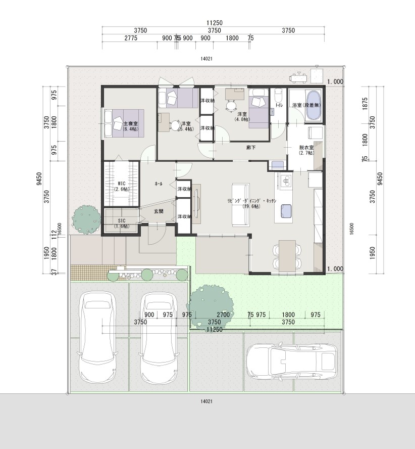 - ※完成予想図やCG合成画像は、門塀・植栽・庭・外観等、実際とは多少異なる場合があります。