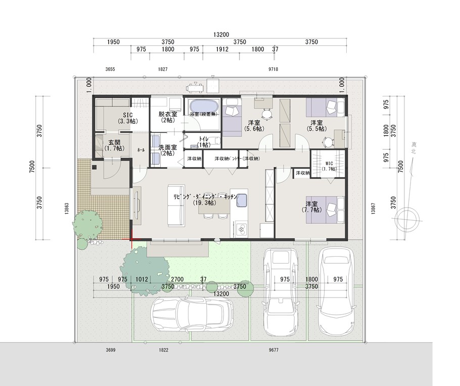 - ※完成予想図やCG合成画像は、門塀・植栽・庭・外観等、実際とは多少異なる場合があります。