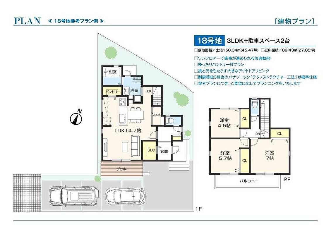 | 建物面積 | - | 土地面積 | 150.34m2(18号地) 184.02m2(19号地) |