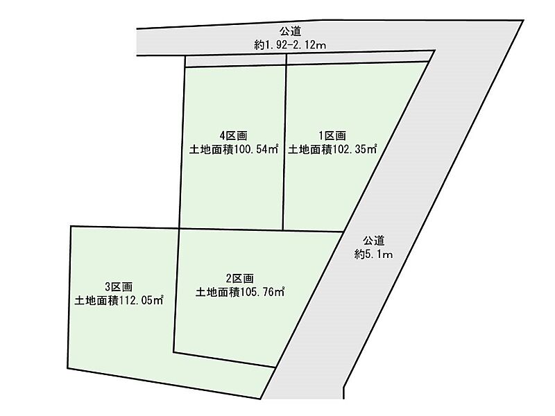 | 建物面積 | - | 土地面積 | 102.35m2~105.76m2<私道負担面積17.36m2> |