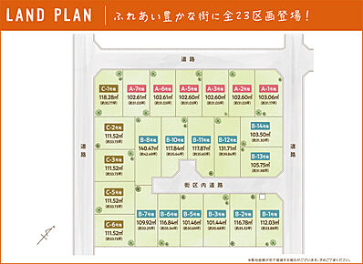 全体区画図 土地面積 102.60m2から140.47m2 価格 未定 -
