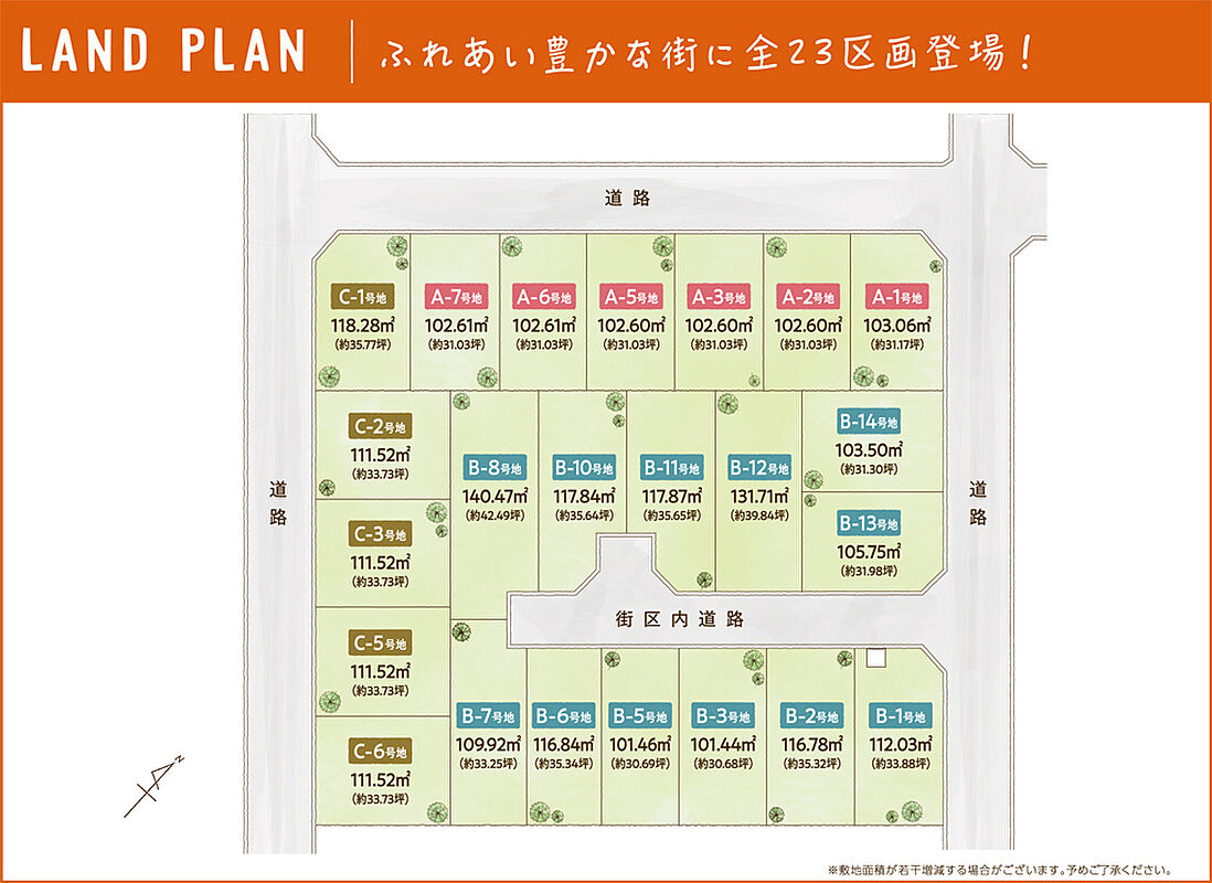 C街区 土地面積 111.52m2~118.28m2 価格 未定 -