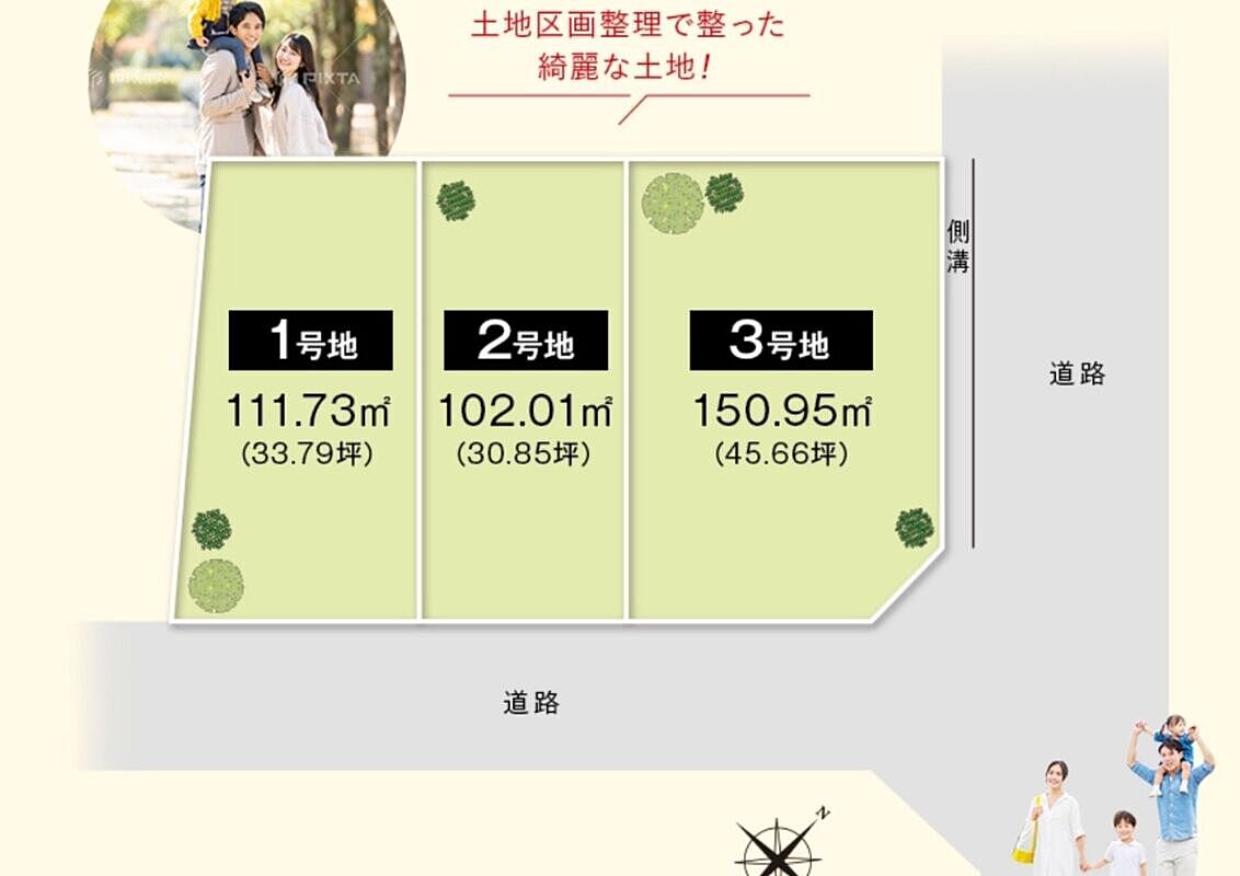 | 建物面積 | - | 土地面積 | 102.01m2~150.95m2 |