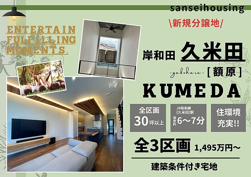 建築条件付き土地 【三成ハウジング】岸和田久米田額原全3区画