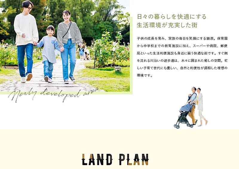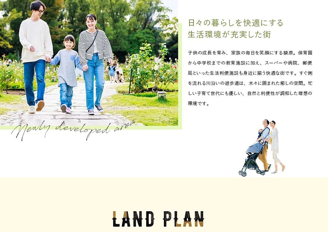 | 建築条件 | 建築条件付 建築条件付き土地とは一定期間内に、その土地に建築する建物の請負契約が締結されることを条件に販売される土地のことです。 土地売買契約締結後、建築請負会社と購入した土地に建築する建物について協議することになります。広告に参考プランが掲載されている場合でも、プランは一例であり、実際の建築プランは建築請負会社と土地購入者で協議・検討することが可能です。 期間内に建築プランが決まらず建築請負契約が成立しなければ土地売買契約は白紙となり、支払済みの金銭はすべて返還されます。 建築請負会社が指定されている場合と指定されていない場合があります。 また、建築条件付き土地の価格には、建物価格は含まれません。 |