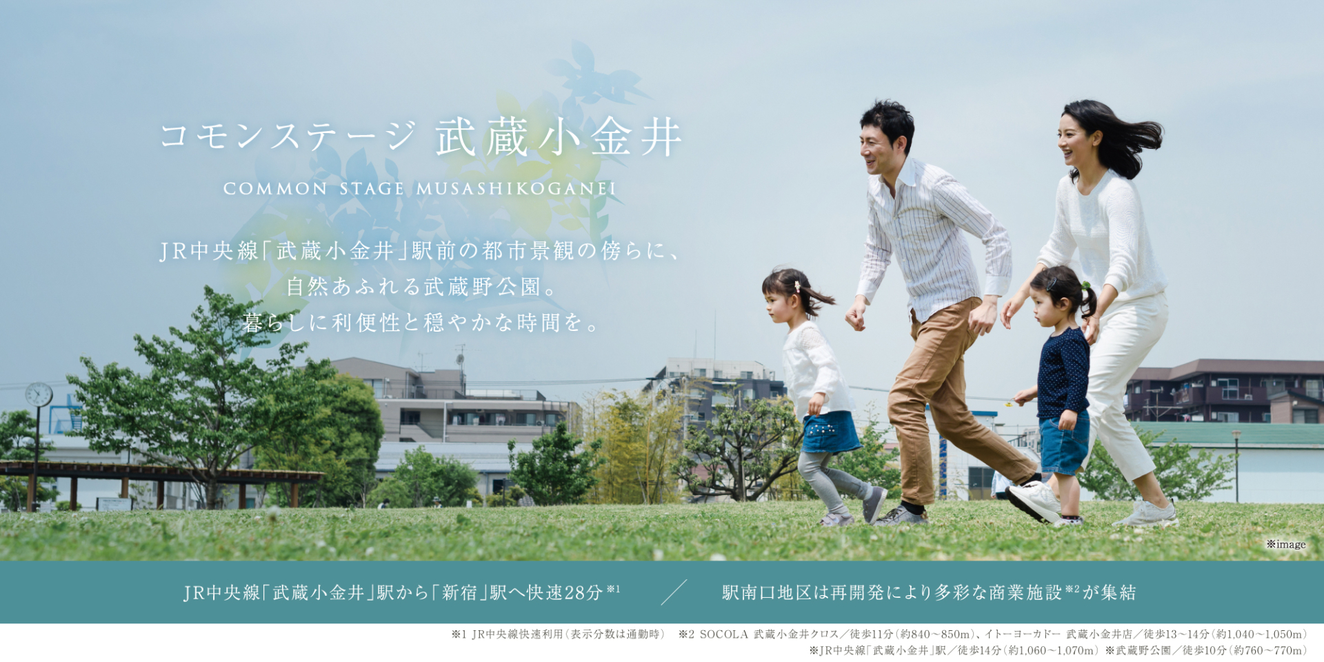 JR中央線「武蔵小金井」駅へ徒歩14分、「新宿」駅や「東京」駅へダイレクトアクセスが叶う便利な立地。通勤・通学はもちろん、休日のお出かけもスムーズに移動ができます。
