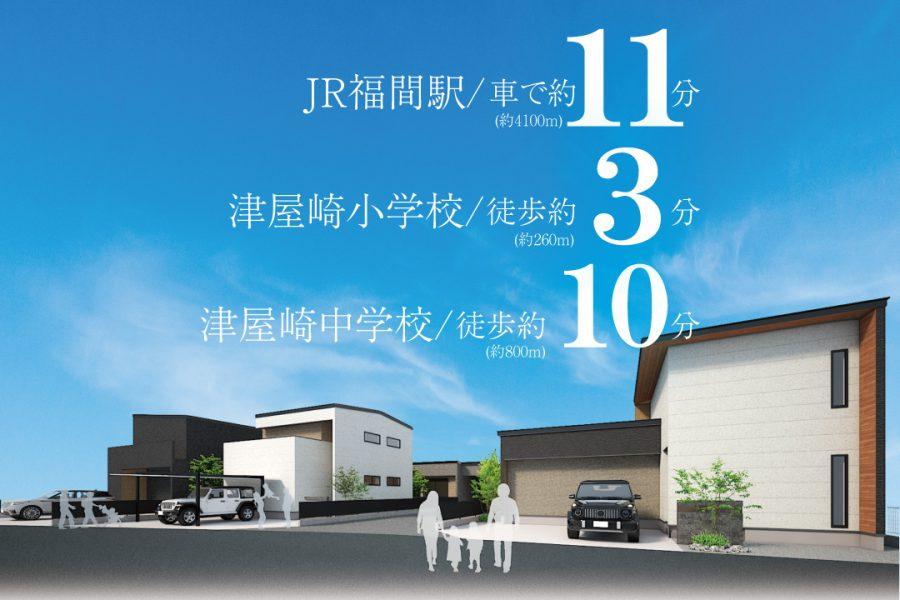 津屋崎小学校まで徒歩約3分、津屋崎中学校まで徒歩約10分
