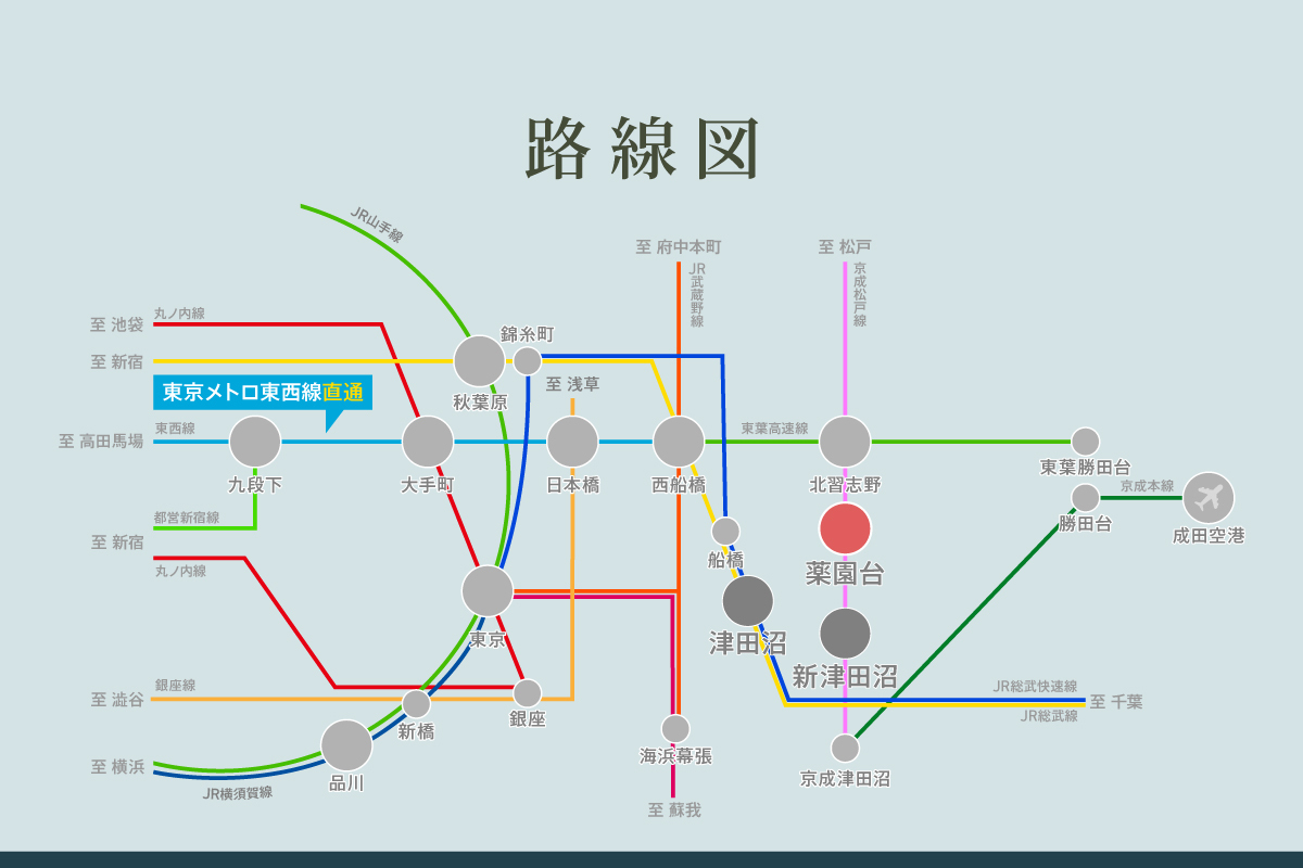 京成松戸線「薬園台」駅 徒歩10分 京成松戸線「習志野」駅 徒歩15分~16分 |