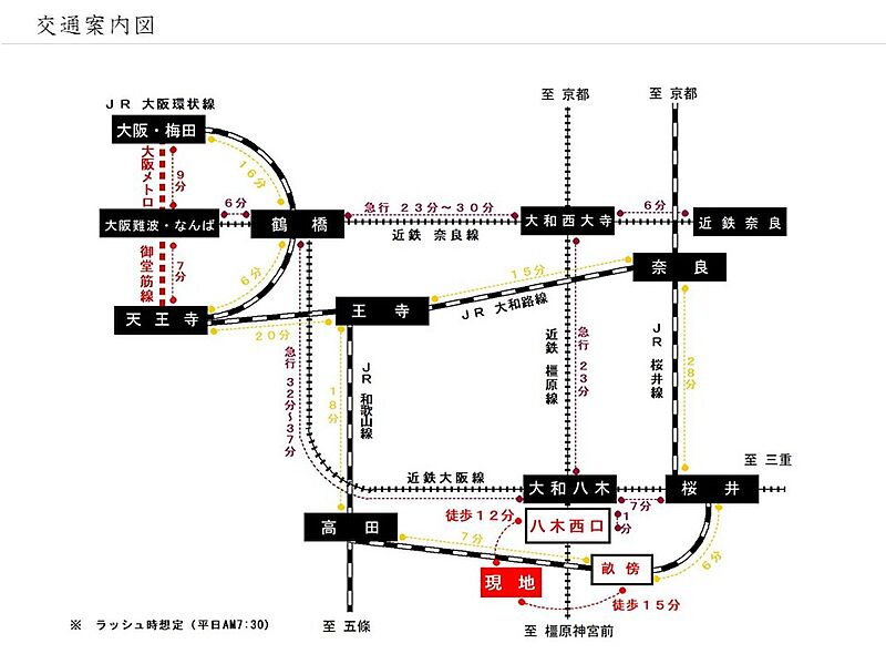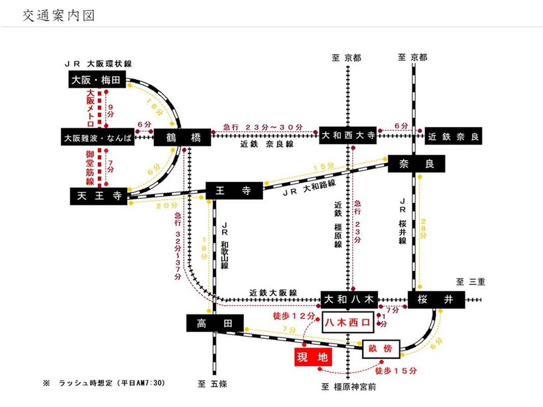 近鉄橿原線「八木西口」駅 徒歩11分~12分 JR桜井線「畝傍」駅 徒歩14分~15分 |