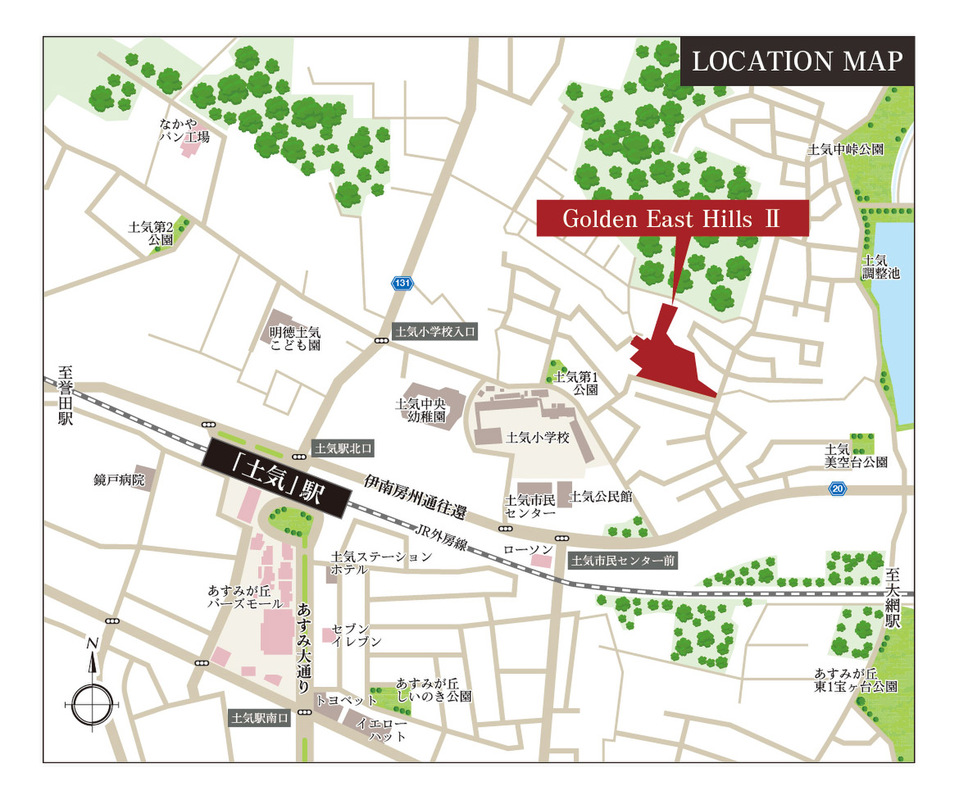 - JR外房線「土気」駅 徒歩8分~9分JR外房線「大網」駅 徒歩53分~54分