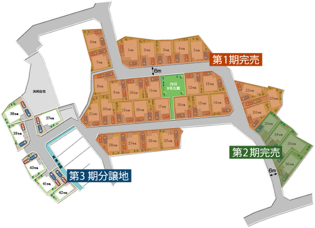 ■3期が新規分開始!全42区画の大型タウン!分譲地内に公園あり、周辺に大きな公園もあります。新しい住宅が並ぶ綺麗な街並みは、大型タウンならではの魅力でもありますよ~!