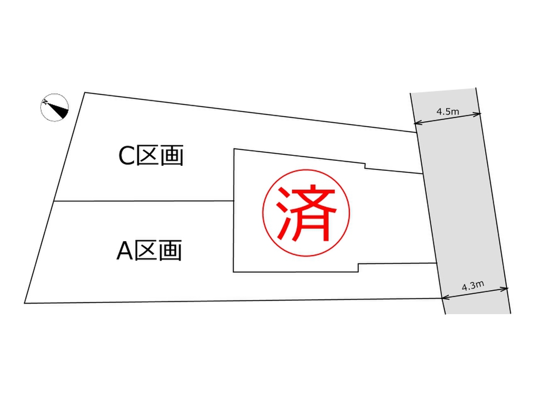 | 駐車場 | 0台 ~ 1台 | 道路の幅員 | 南側約4.5m公道 |