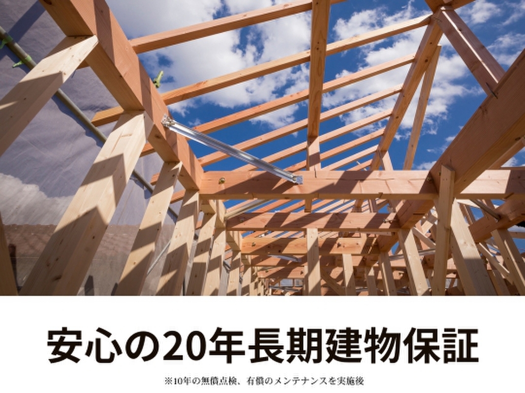 住宅の構造耐力上主要部分と室内への雨水浸入部分が保証対象です。10年目に無償点検を実施し、当社が必要と判断した有償メンテナンス工事を実施して頂くことで、更に10年間保証が延長されます。