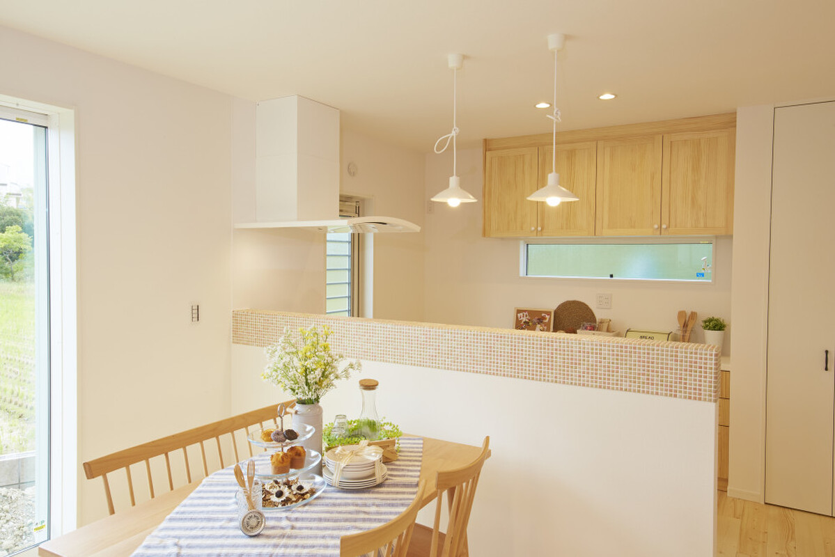 快適性はもちろん、毎日を彩る空間としてのデザインや素材選びにこだわった高気密・高断熱住宅。見た目の美しさだけでなく、暮らす人が心から落ち着ける"体に優しい住まい"。