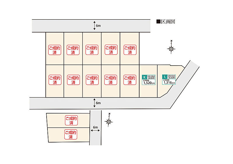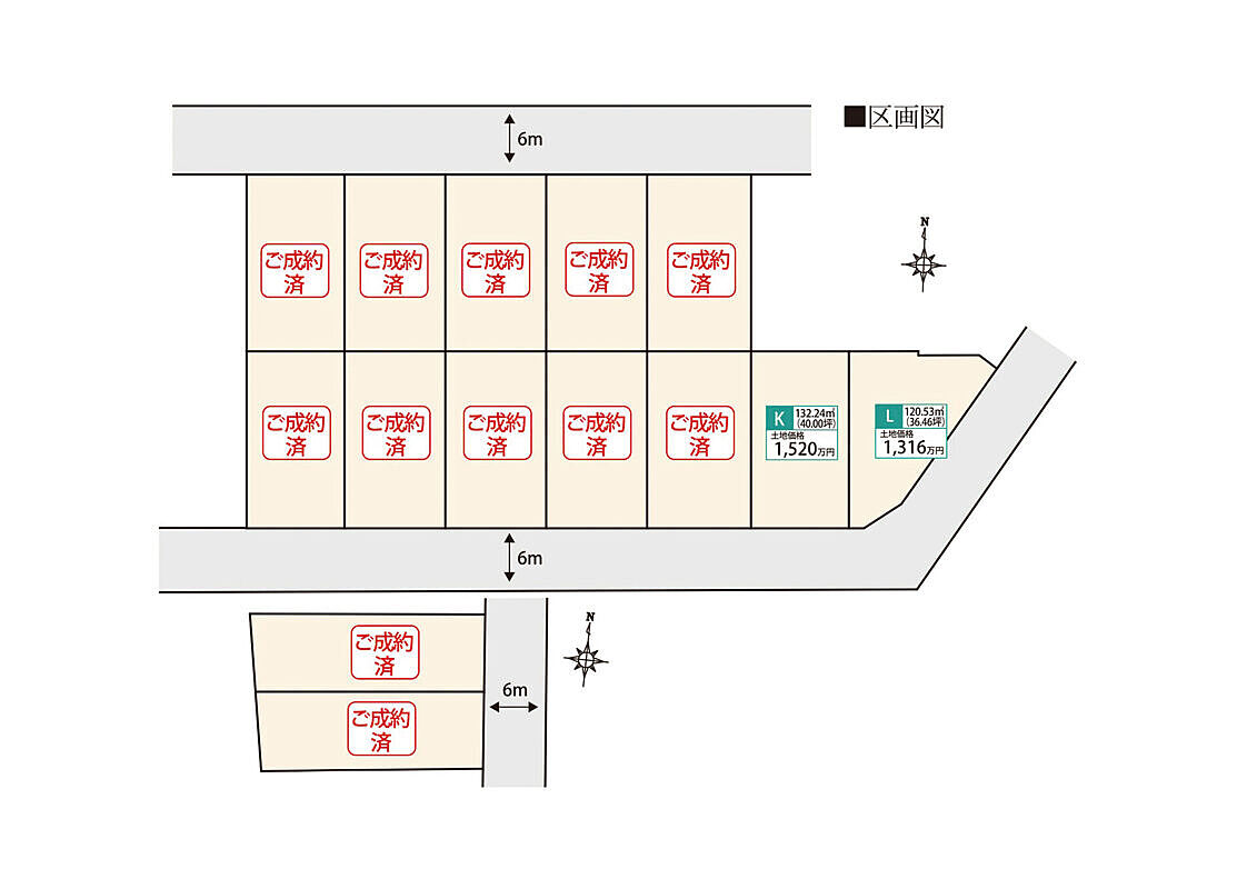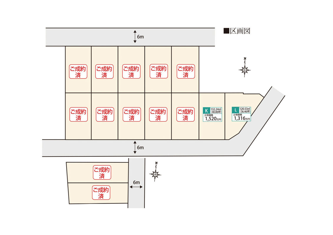 | 建物面積 | - | 土地面積 | 120.53m2(L区画)~132.24m2(K区画) |