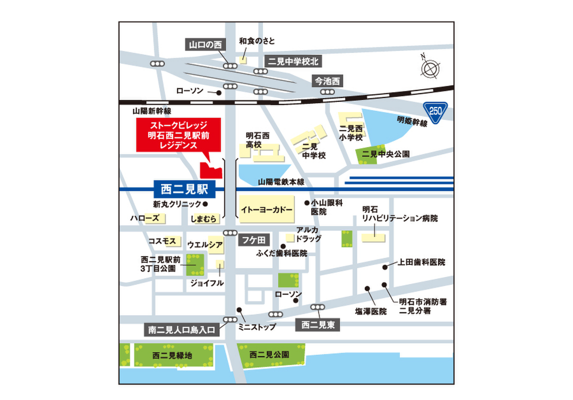 ・西二見駅まで徒歩1分~3分!1駅先の東二見駅から特急利用もスムーズ。