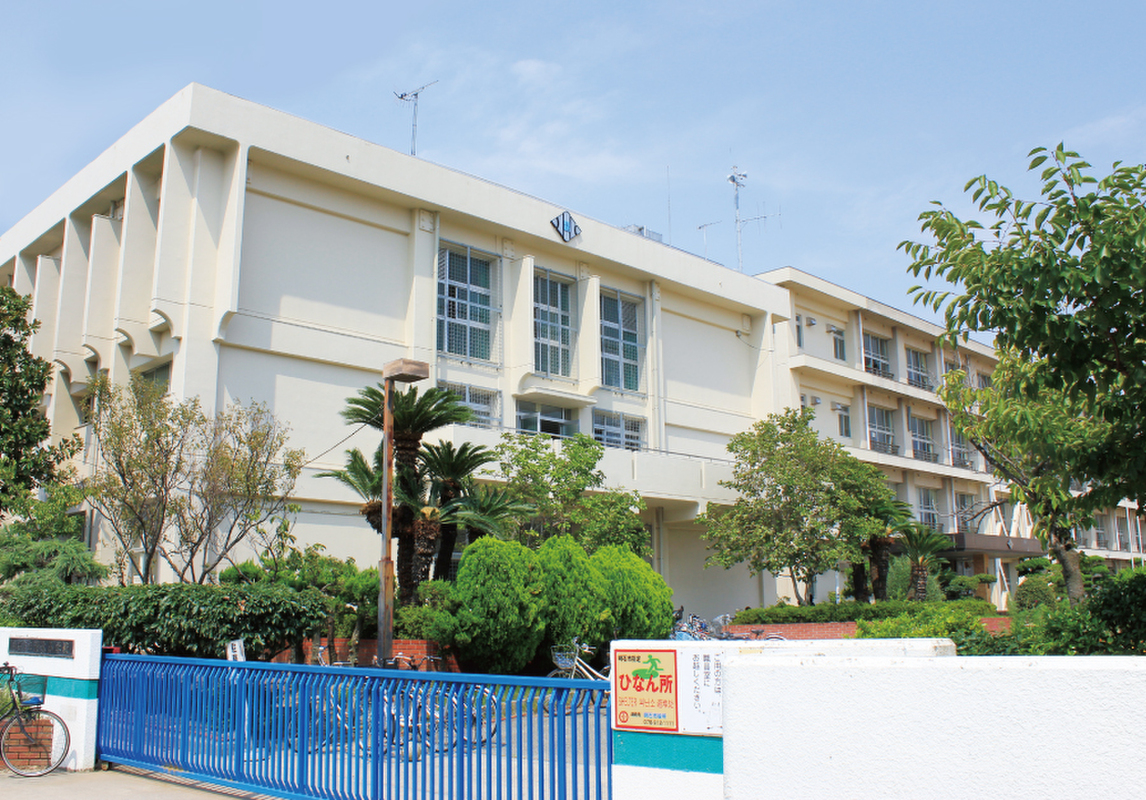 1980年開校、児童数は600名超。学校教育目標は「子どもたちの夢が育つ学校」。広々とした校庭があり、田畑に囲まれ落ち着いた環境に位置しています。