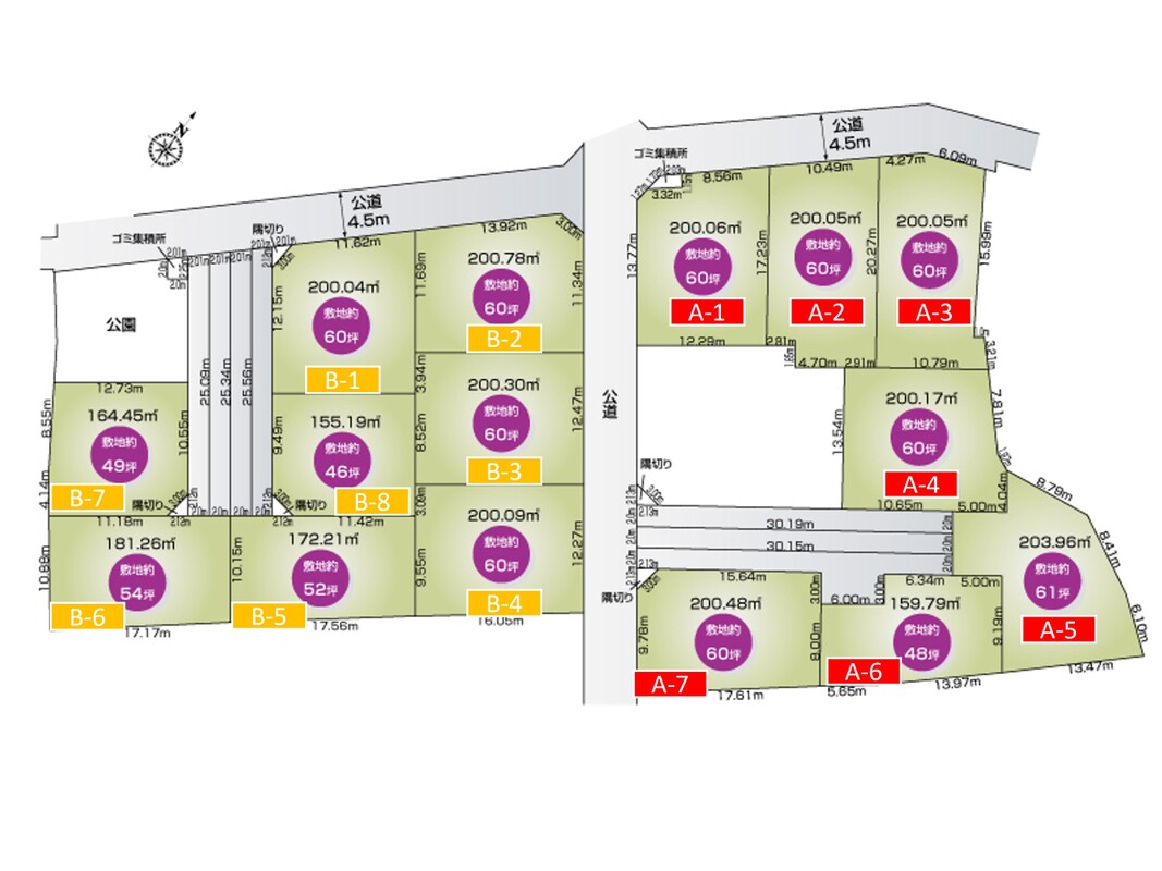 | 建物面積 | - | 土地面積 | 155.19m2(B-8)~203.96m2(A-5) |