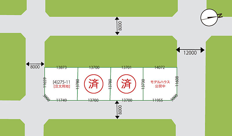 | 建築条件 | 建築条件付 建築条件付き土地とは一定期間内に、その土地に建築する建物の請負契約が締結されることを条件に販売される土地のことです。 土地売買契約締結後、建築請負会社と購入した土地に建築する建物について協議することになります。広告に参考プランが掲載されている場合でも、プランは一例であり、実際の建築プランは建築請負会社と土地購入者で協議・検討することが可能です。 期間内に建築プランが決まらず建築請負契約が成立しなければ土地売買契約は白紙となり、支払済みの金銭はすべて返還されます。 建築請負会社が指定されている場合と指定されていない場合があります。 また、建築条件付き土地の価格には、建物価格は含まれません。 |