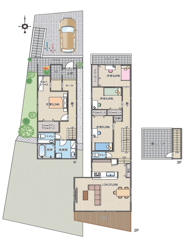 - ※完成予想図やCG合成画像は、門塀・植栽・庭・外観等、実際とは多少異なる場合があります。