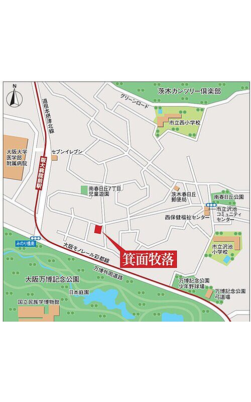 大阪モノレール彩都線「阪大病院前」駅 徒歩4分 JR東海道・山陽本線「茨木」駅 近鉄バス10分「春日丘公園」バス停 徒歩7分 |