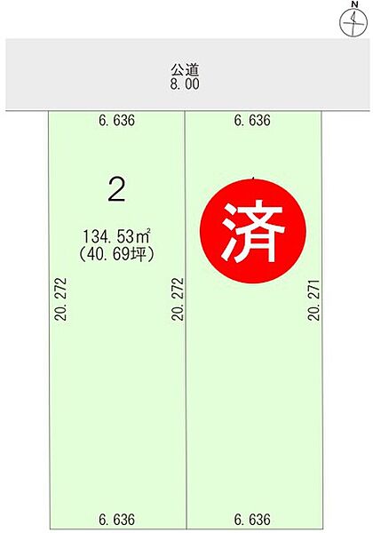 | 建物面積 | - | 土地面積 | 134.52m2(40.69坪) ・ 134.53m2(40.69坪) |