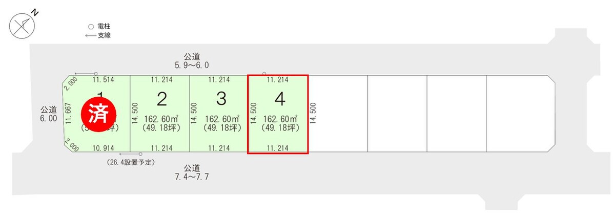 | 駐車場 | - | 道路の幅員 | 公道 5.9~6.0m、7.4~7.7m、に接する、アスファルト舗装 |