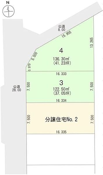 | 建物面積 | - | 土地面積 | 122.50m2(区画3)・136.30m2(区画4) |