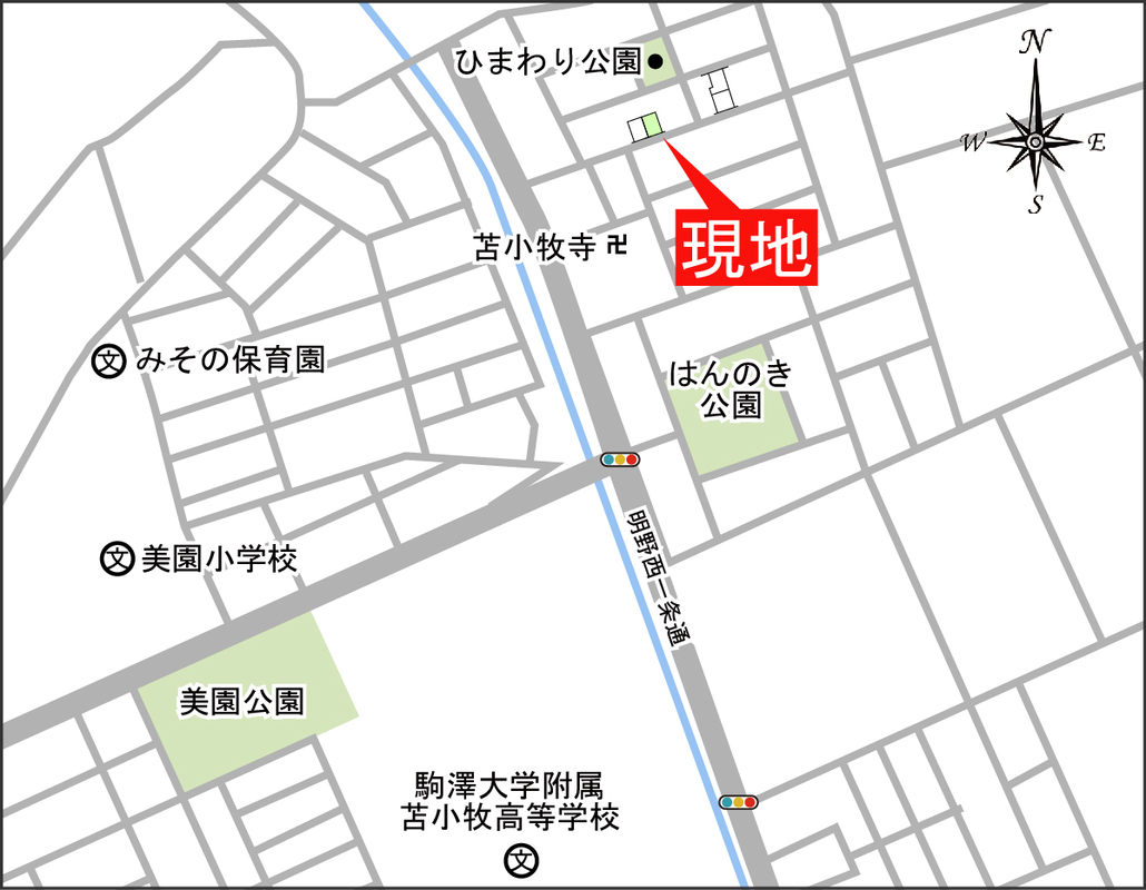 | 主たる設備の概要 | 電気/電力供給有、上水道/苫小牧市営水道、下水道/公共下水道、ガス/都市ガス | 開発許可番号 | 開発許可申請不要な土地のためなし |