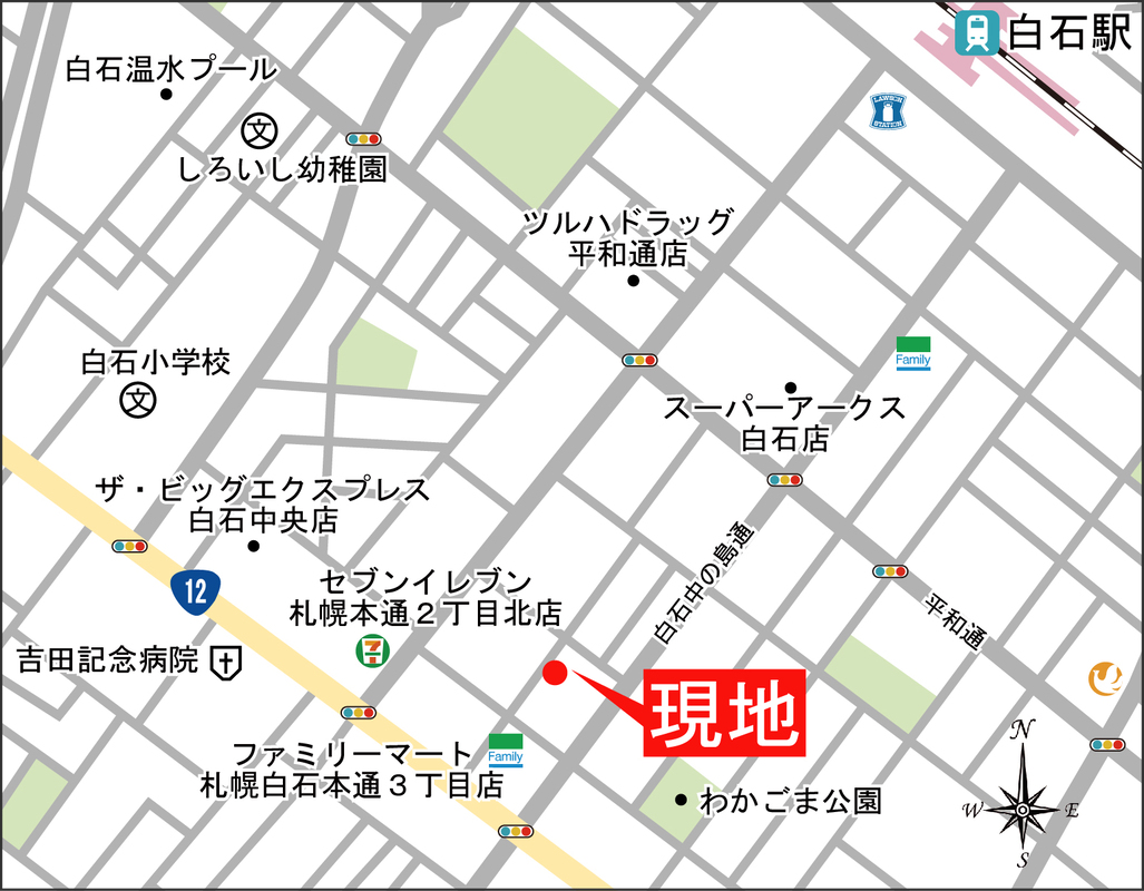JR函館本線「白石」駅 徒歩9分 札幌市営東西線「白石」駅 徒歩19分 |