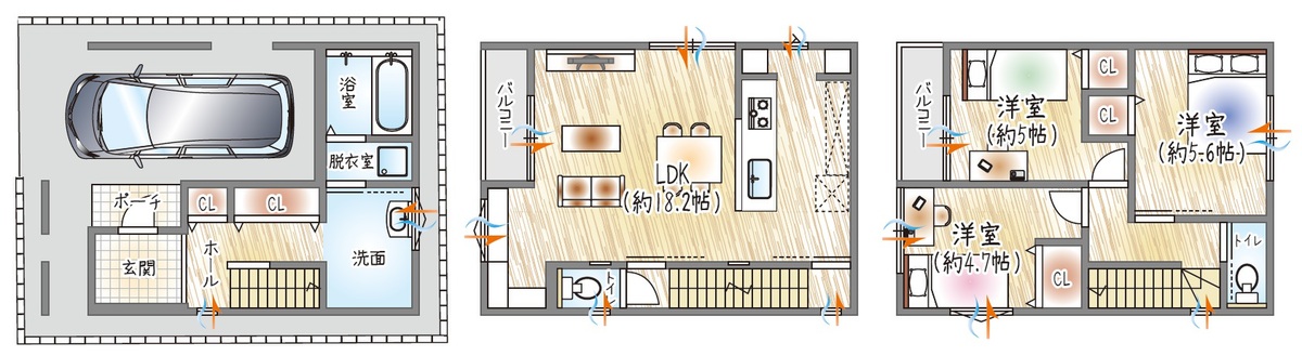 - ※完成予想図やCG合成画像は、門塀・植栽・庭・外観等、実際とは多少異なる場合があります。