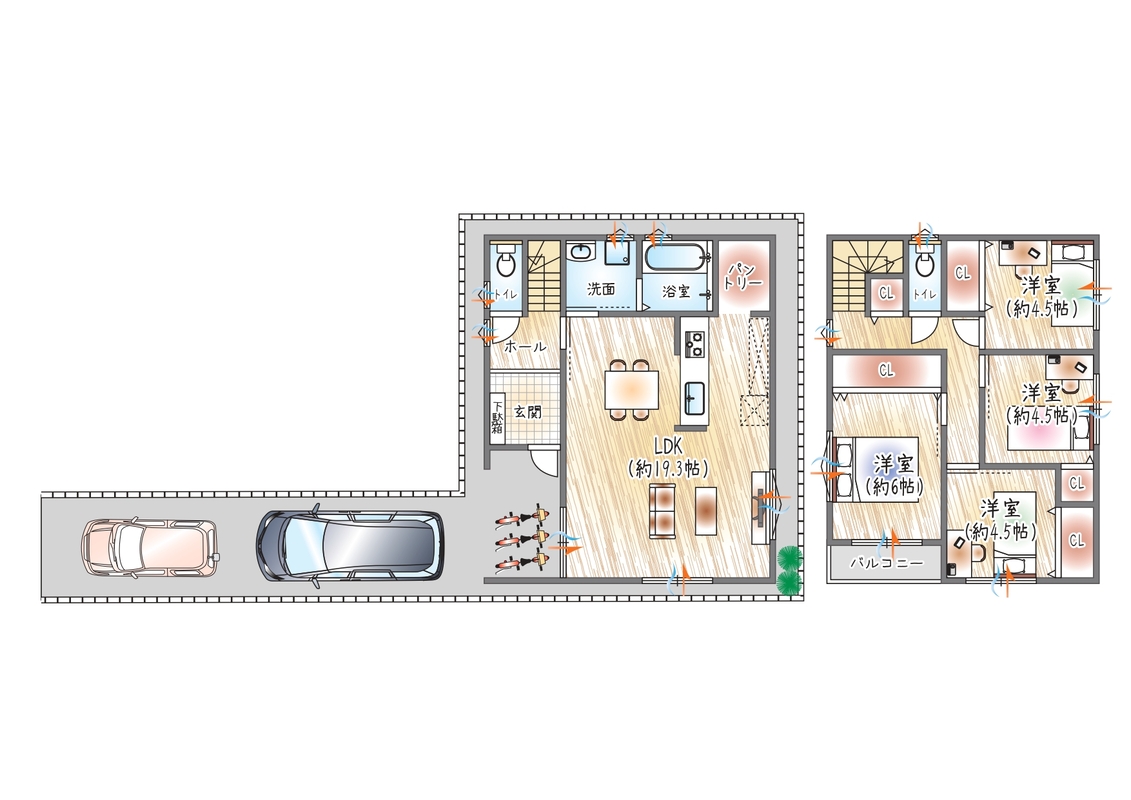 - ※完成予想図やCG合成画像は、門塀・植栽・庭・外観等、実際とは多少異なる場合があります。