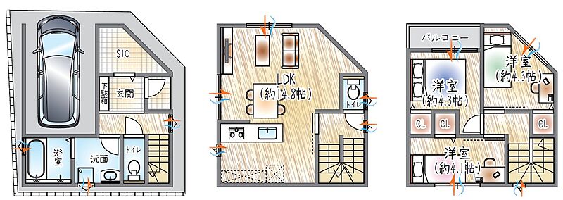 ■3階建て3LDK×駐車1台可能プラン
