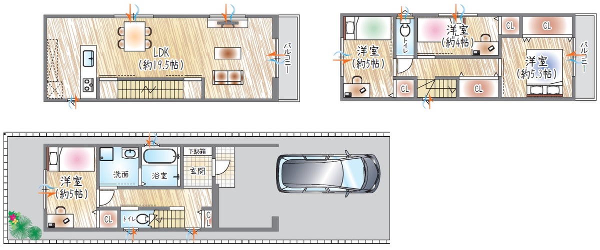 - ※完成予想図やCG合成画像は、門塀・植栽・庭・外観等、実際とは多少異なる場合があります。
